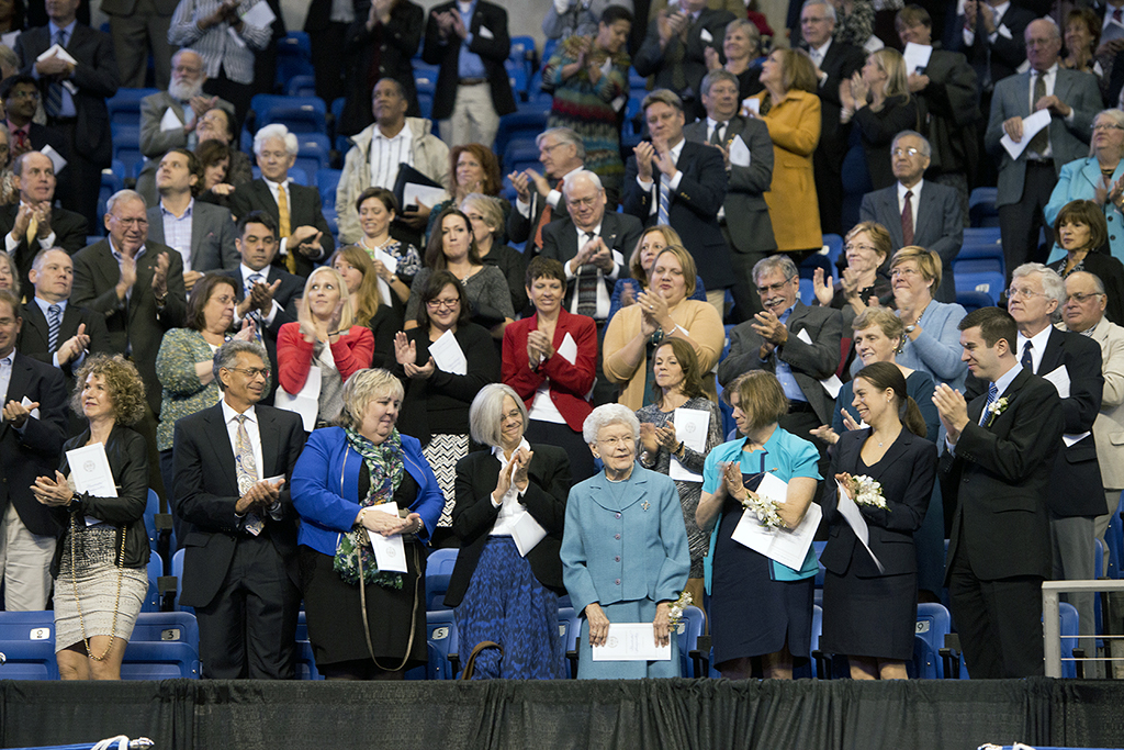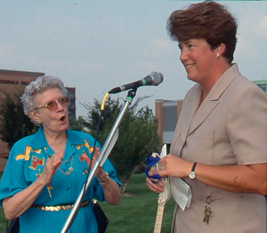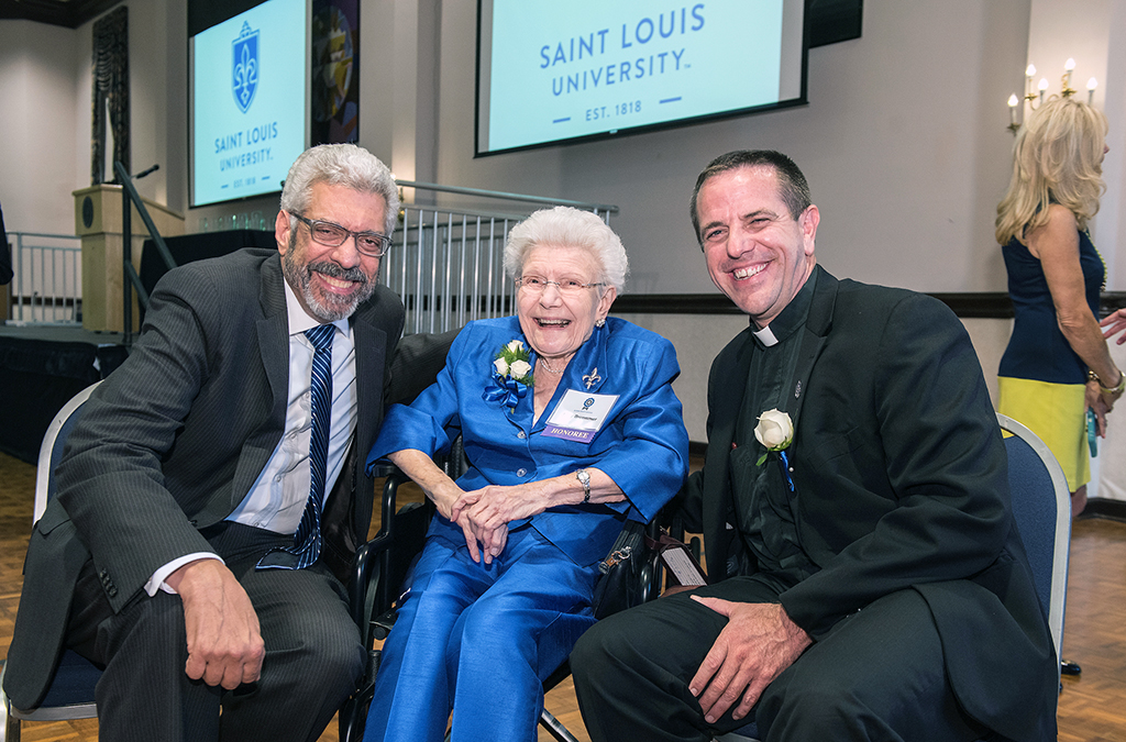 Mary Bruemmer Plaza is dedicated at SLU's Spring Hall.