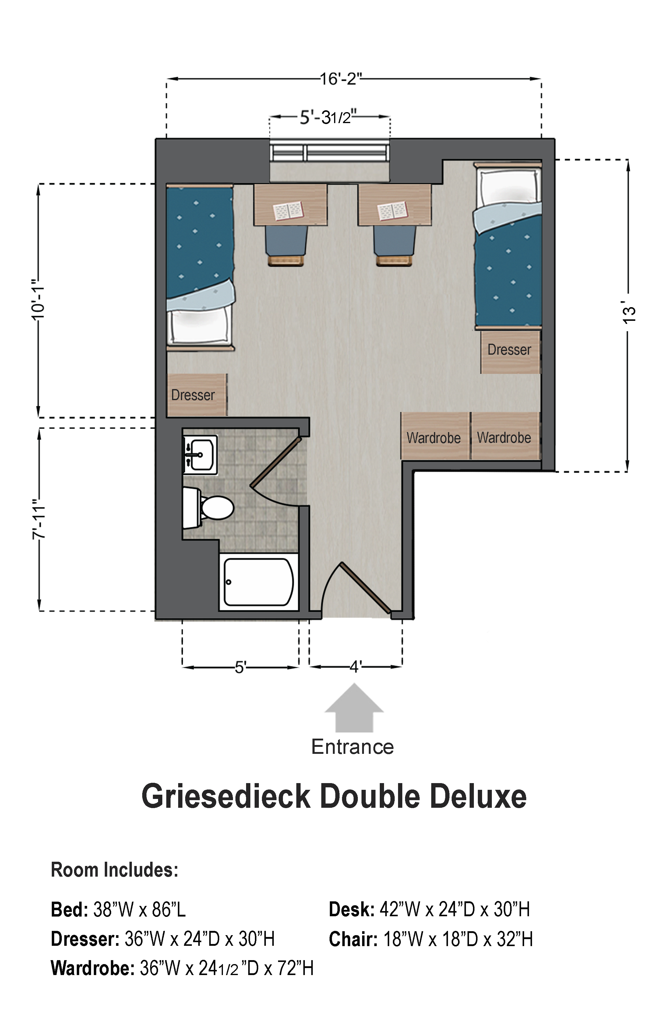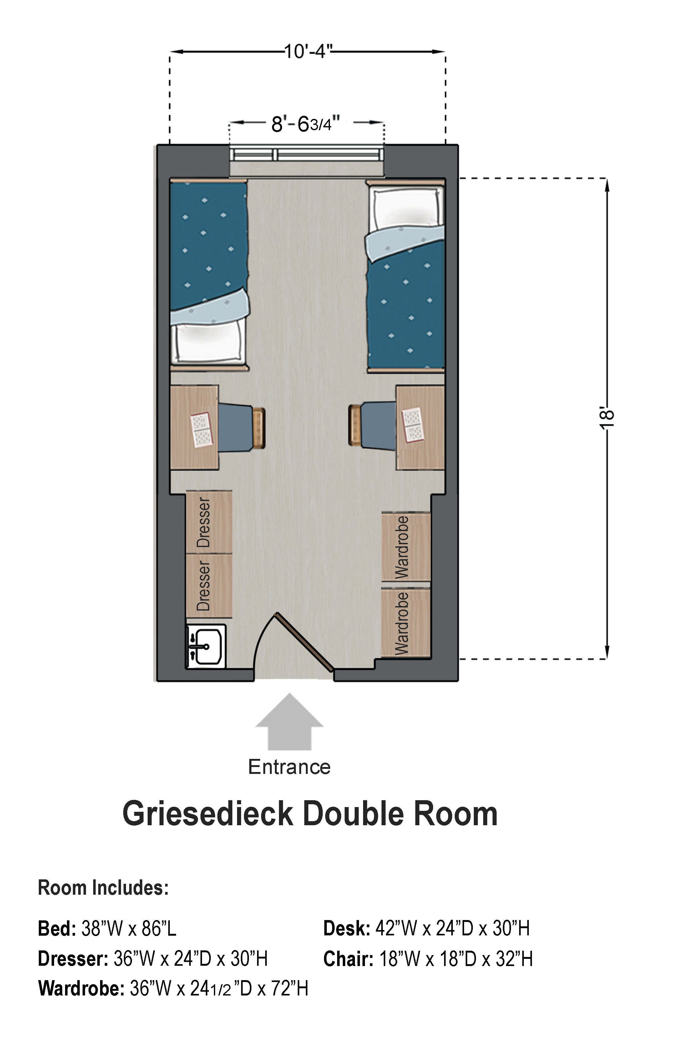 | Population: | About 650 freshman and older students on 14 floors in Griesedieck, Walsh and Clemens Halls, all of which are co-ed with single-gender rooms and single-gender floors. |