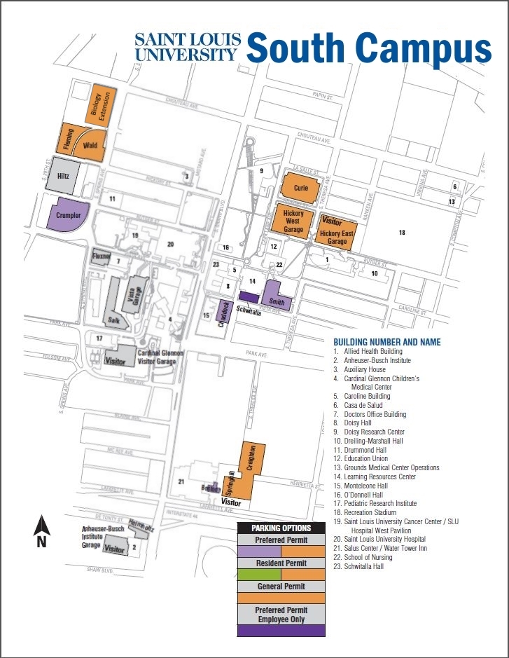 It is also within easy walking distance of SSM Health Saint Louis University Hospital and SSM Health Cardinal Glennon Hospital. Guest parking is available at Hickory Garage East at a rate of $2 per hour.